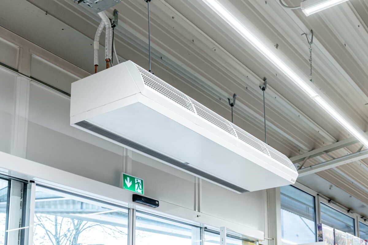 • Installation eines Türluft-Schleiers mit einer Luft-Luft-Wärmepumpe